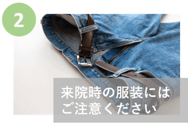 ご利用時の服装については、ジーンズなどの固い素材の衣類は、お控えください。